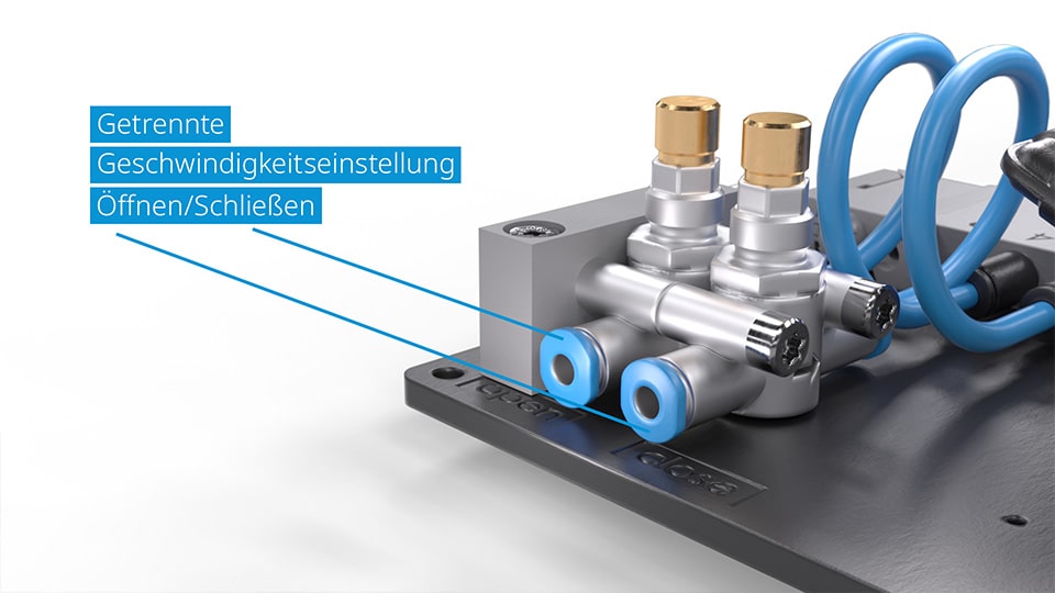通过单独提供的气动控制系统,可以精确可靠控制自动开启/关闭装置。通过两个节流单向阀,您可以单独调节测试治具的开关速度。压缩空气顺序阀令您能够有选择地开启压缩空气,以确保平稳运行。