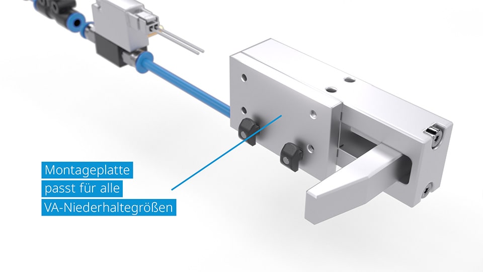 压紧释放装置令自动化解决方案更臻完善,专为自动解锁带有锁定条的封闭式压紧装置而开发,可与所有尺寸的压紧装置兼容。这些可以安装在框架的侧面轮廓上,也可以直接安装在固定板上。得益于与气动控制系统的无缝互动,压紧释放装置与测试系统完美结合。