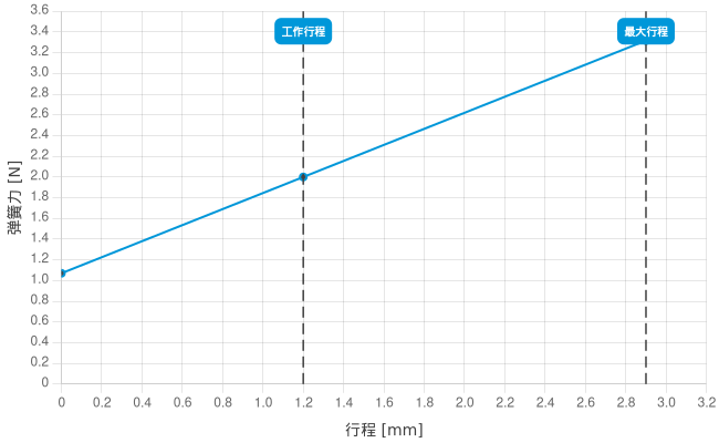 - 工作行程中的弹簧力: 2 N