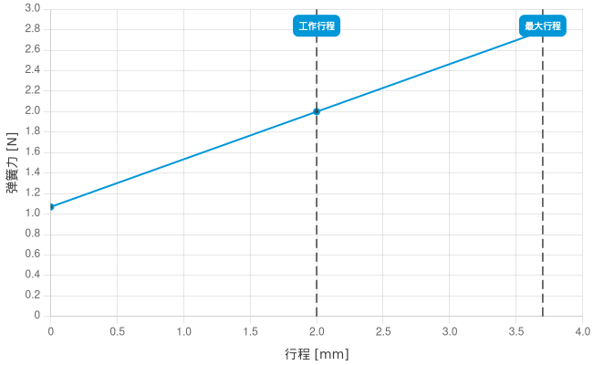 - 工作行程中的弹簧力: 2 N