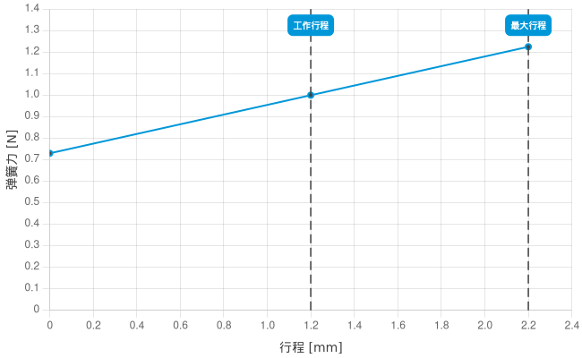 - 工作行程中的弹簧力: 1 N