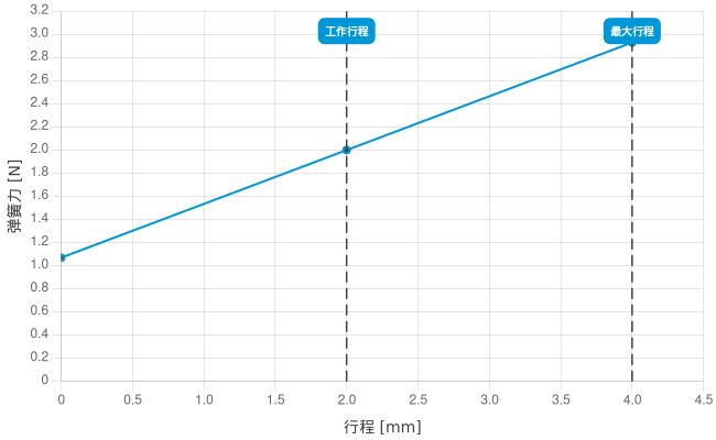 - 工作行程中的弹簧力: 2 N