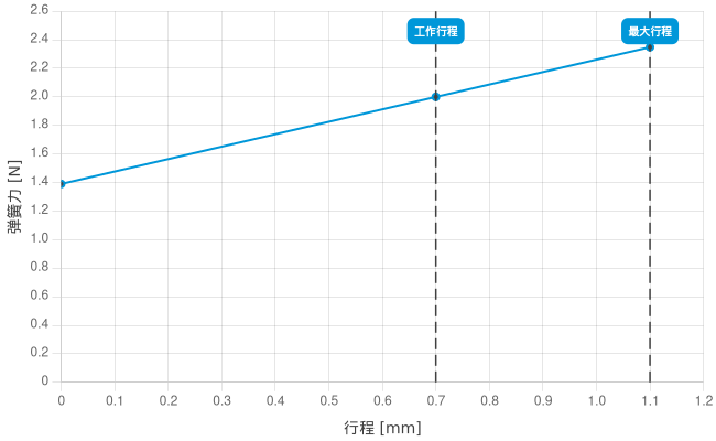 - 工作行程中的弹簧力: 2 N