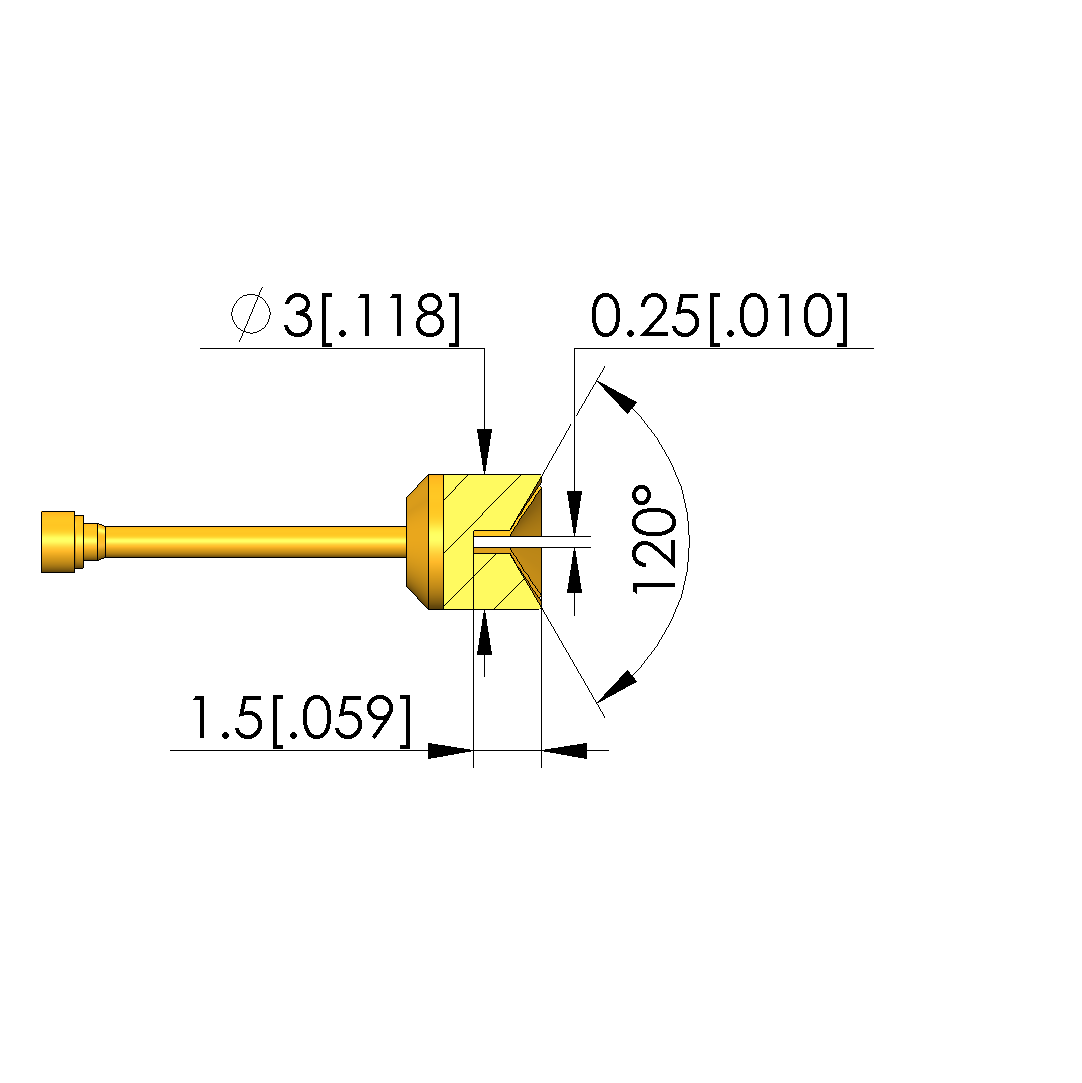• 针头形状 材料: 3 铍铜