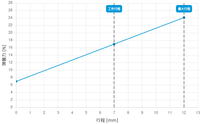 • 工作行程中的弹簧力: 17 N