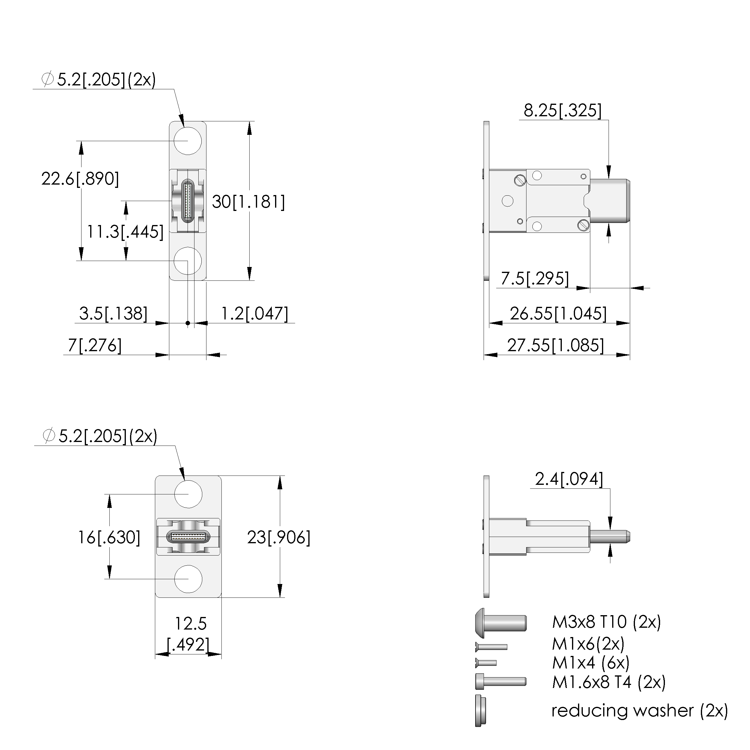 • 精密、低磨损触探 USB 插头连接器