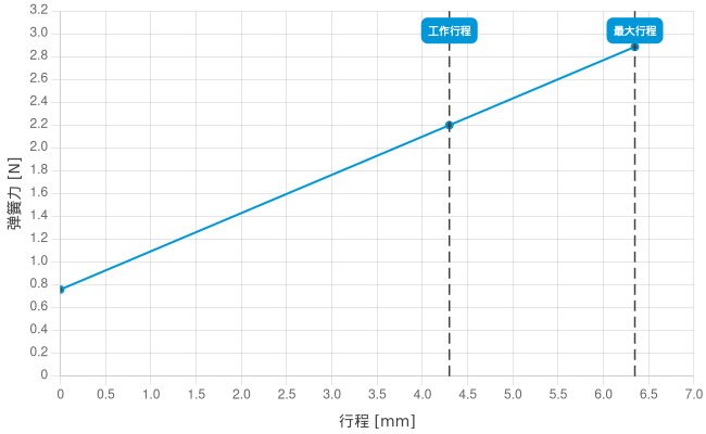 • 工作行程中的弹簧力: 2,2 N