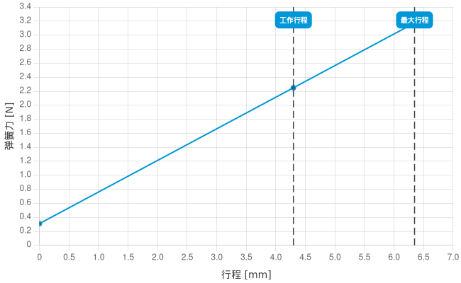 • 工作行程中的弹簧力: 2,25 N