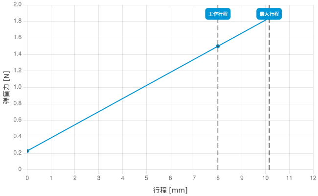 - 工作行程中的弹簧力: 1,5 N