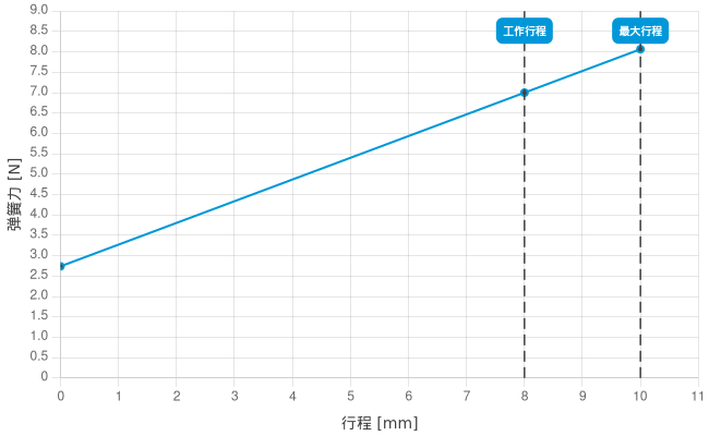 - 工作行程中的弹簧力: 7 N